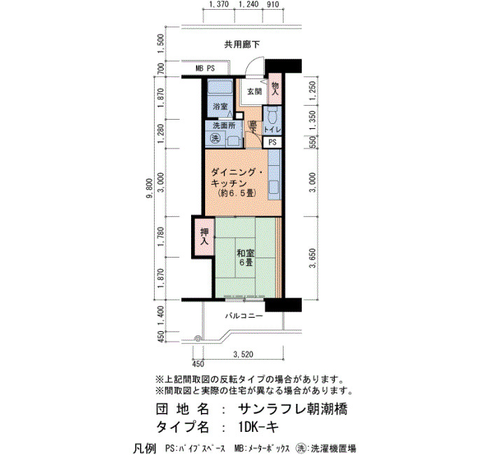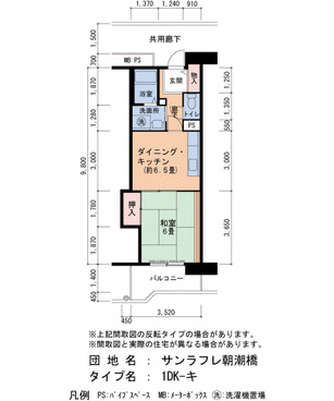| 間取り | 1DK | 床面積 | 34㎡ |