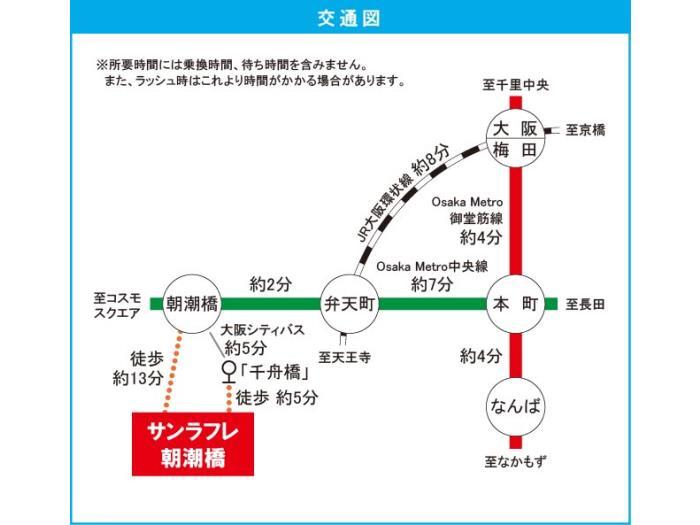 大阪市営中央線 『 朝潮橋駅 』 駅までバスで5分 バス停『千舟橋』 徒歩5分 |