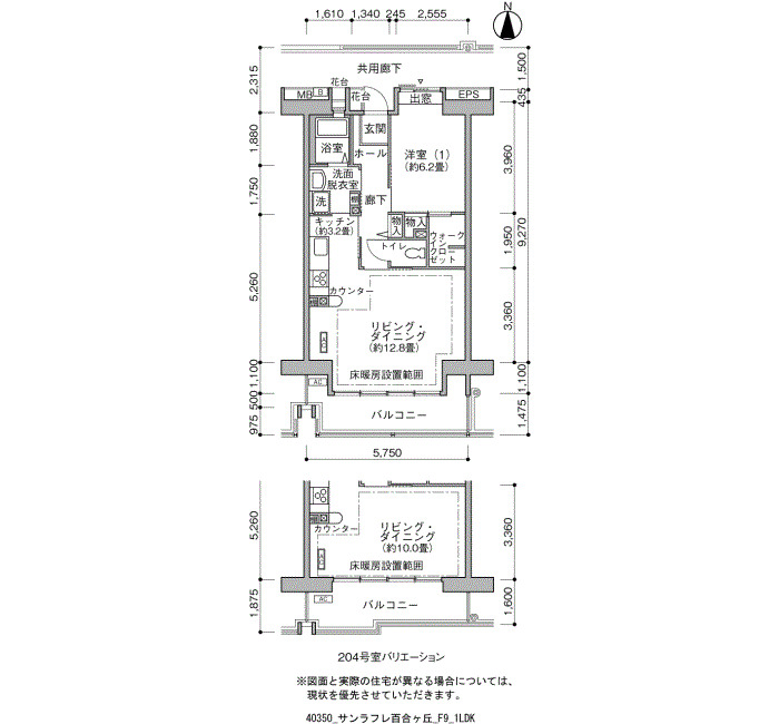 間取り | 1LDK | 床面積 | 56㎡ |