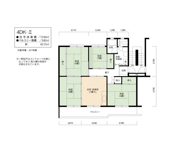 | 間取り | 4DK | 床面積 | 72㎡ |