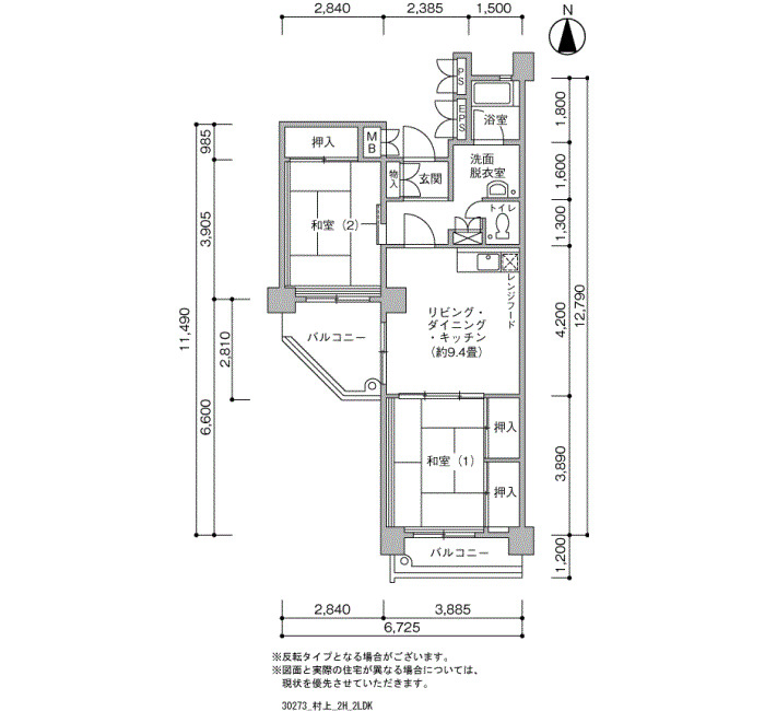 | 間取り | 2LDK | 床面積 | 64㎡ |