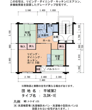 | 間取り | 2LDK | 床面積 | 54㎡ |