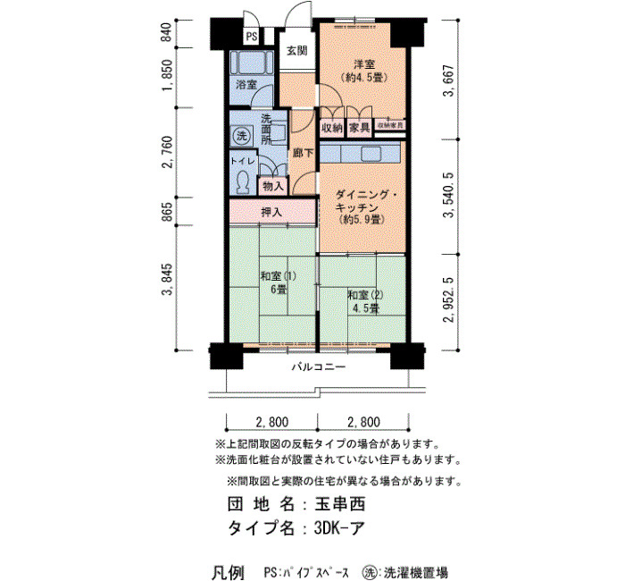 | 間取り | 2LDK | 床面積 | 56㎡ |