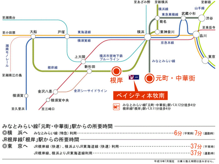 JR京浜東北線 『 根岸駅 』 駅までバスで13分 バス停『元町・中華街』 徒歩3分 みなとみらい線 『 元町・中華街駅 』 駅までバスで13分 バス停『山下町』 徒歩3分 JR京浜東北線 『 桜木町駅 』 駅までバスで24分 バス停『元町・中華街』 徒歩3分 JR根岸線 『 桜木町駅 』 駅までバスで24分 バス停『元町・中華街』 徒歩3分 |