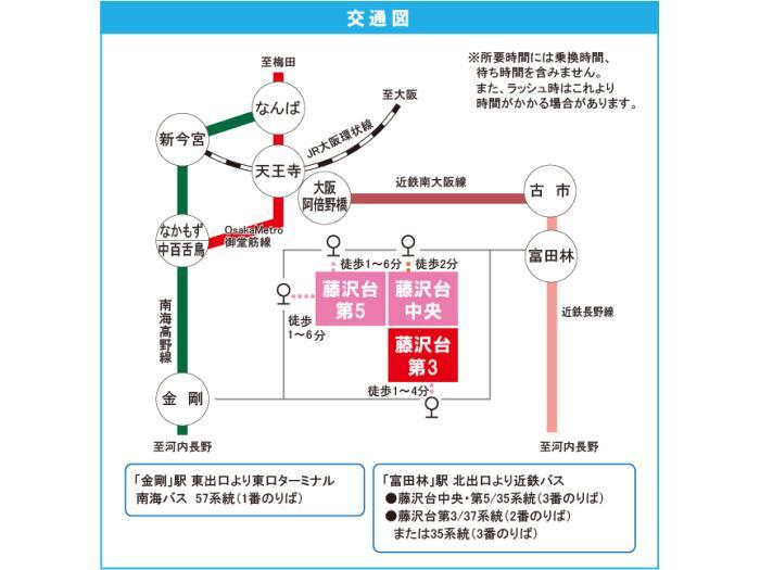 近鉄長野線 『 富田林駅 』 駅までバスで15分 バス停『藤沢台一丁目』 徒歩2分 近鉄長野線 『 富田林西口駅 』 徒歩25分 |