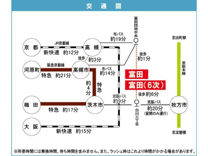 JR 東海道・山陽本線 『 高槻駅 』 駅までバスで20分 バス停『富田団地中』 徒歩2分 阪急京都線 『 茨木市駅 』 駅までバスで15分 バス停『白川三丁目』 徒歩6分 |