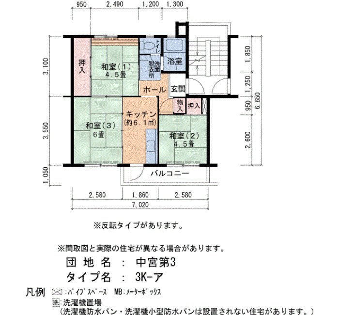 | 間取り | 2DK | 床面積 | 45㎡ |