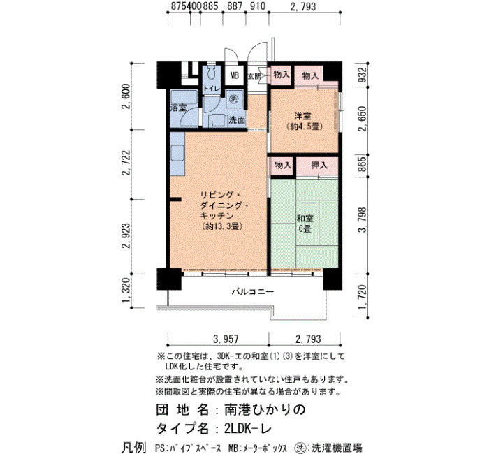 | 間取り | 2LDK | 床面積 | 60㎡ |