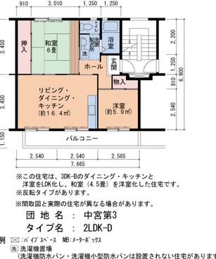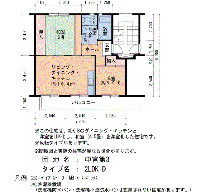 | 間取り | 2LDK | 床面積 | 53㎡ |