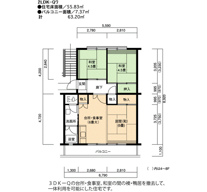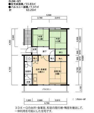 | 間取り | 2LDK | 床面積 | 59㎡ |