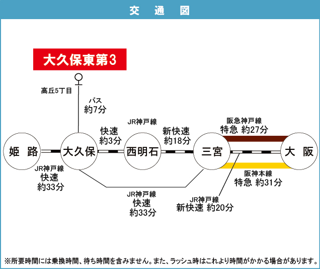 神戸市営西神・山手線 『 西神中央駅 』 駅までバスで37分 バス停『高丘5丁目』 徒歩1分 |