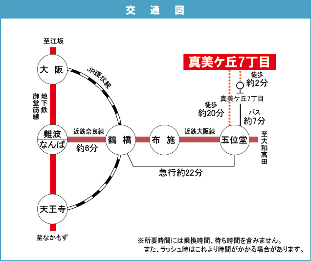 近鉄大阪線 『 五位堂駅 』 駅までバスで6分 バス停『真美ヶ丘七丁目』 徒歩2分 |