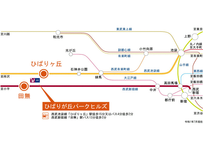 西武池袋線 『 ひばりヶ丘駅 』 駅までバスで3分 バス停『ひばりが丘団地下』 徒歩1分 西武新宿線 『 田無駅 』 駅までバスで11分 バス停『ひばりが丘団地下』 徒歩1分 JR中央線 『 武蔵境駅 』 駅までバスで27分 バス停『ひばりが丘団地下』 徒歩1分 |