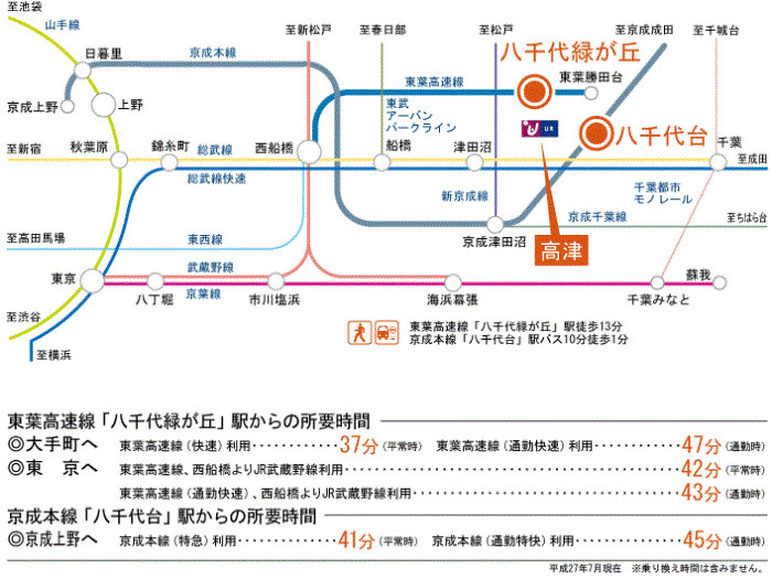 京成本線 『 八千代台駅 』 駅までバスで7分 バス停『団地三叉路』 徒歩1分 東葉高速鉄道 『 八千代中央駅 』 徒歩36分 |