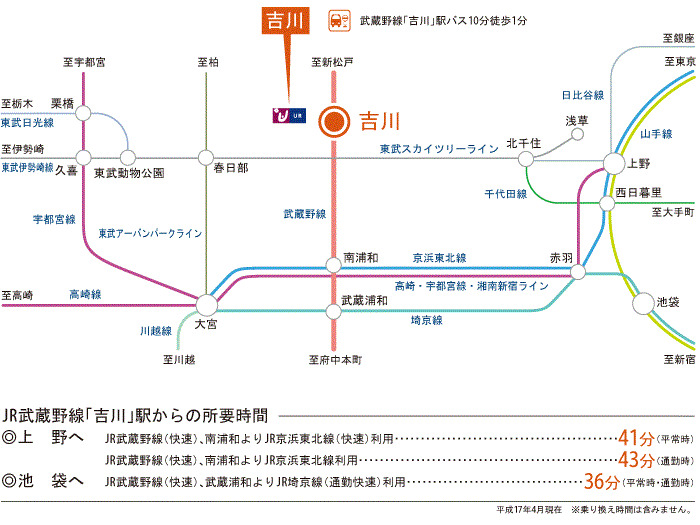 ●交 通/JR武蔵野線「吉川」駅下車、東武バス「吉川きよみ野(吉川団地経由)」行約10分「吉川団地」バス停下車、徒歩3分