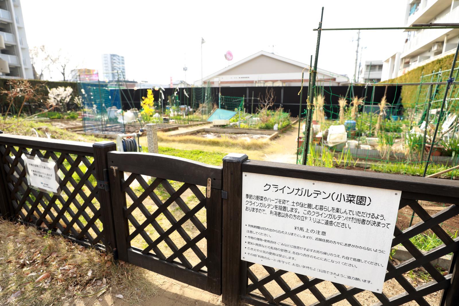 当団地には、居住者の方々がご利用できる有料菜園を設置しております。ご利用にあたっては、別途、申込手続を行っていただくことになります。お申込み方法等、詳細につきましては、管理サービス事務所にお問い合わせください。なお、将来、団地内の居住者用駐車場に不足が生じた場合には、駐車場に転用する可能性があります。