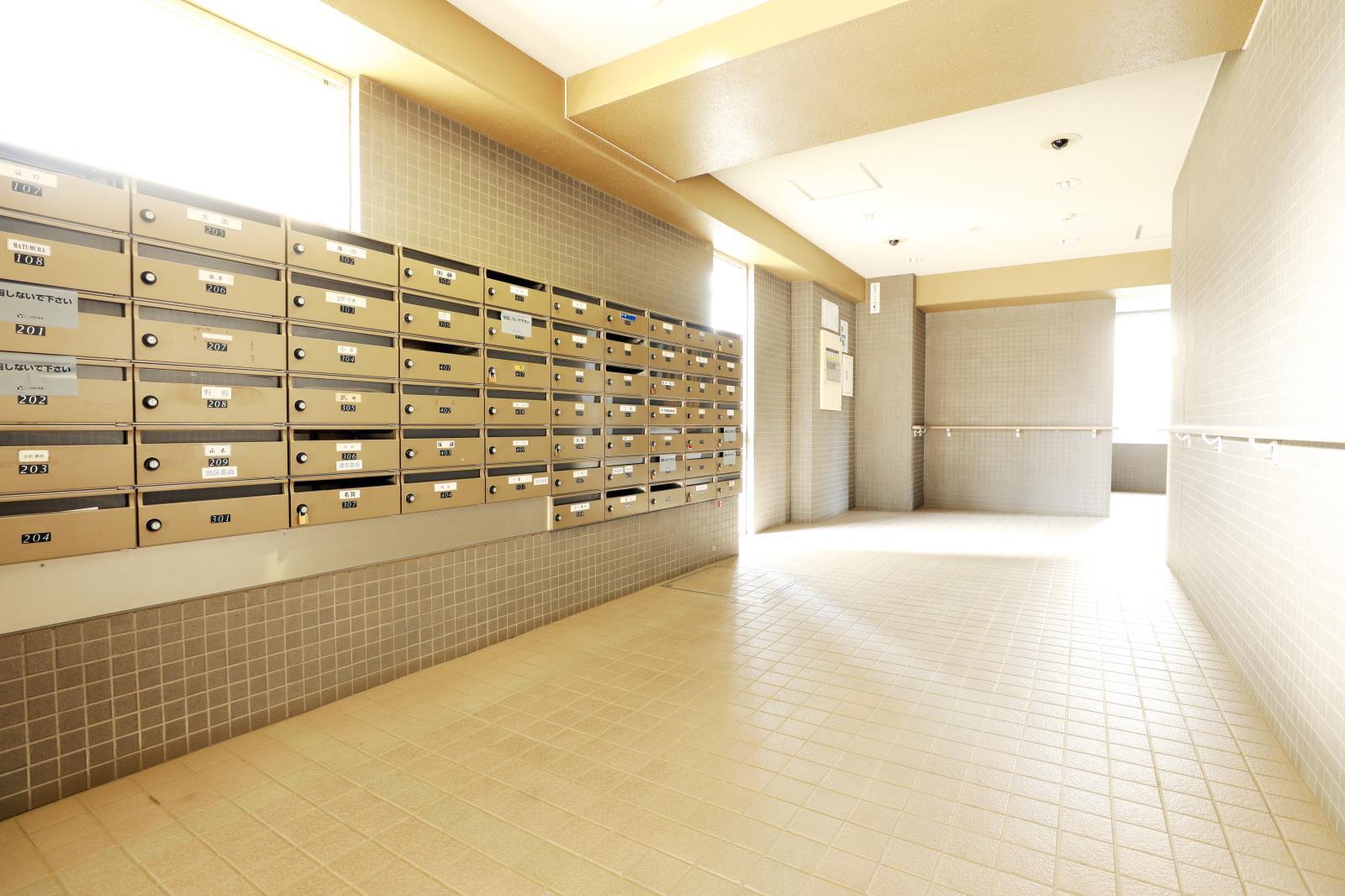 当団地は、エントランスホール、メールコーナー、屋内駐輪場、1階エレベーターホール及びエレベーターかご内に防犯カメラを設置しています。