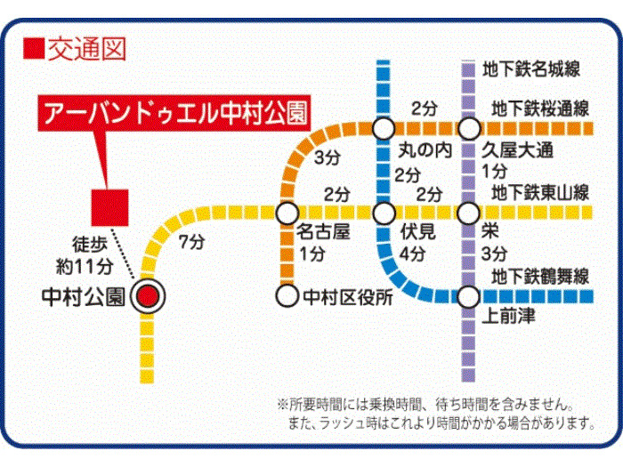 名古屋市営東山線 『 中村日赤駅 』 徒歩13分 名古屋市営東山線 『 名古屋駅 』 駅までバスで11分 バス停『豊国神社 』 徒歩3分 |