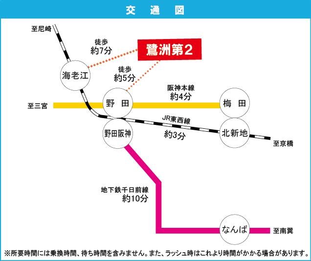 阪神本線 『 野田駅 』 徒歩6分 JR東西線 『 海老江駅 』 徒歩8分 |