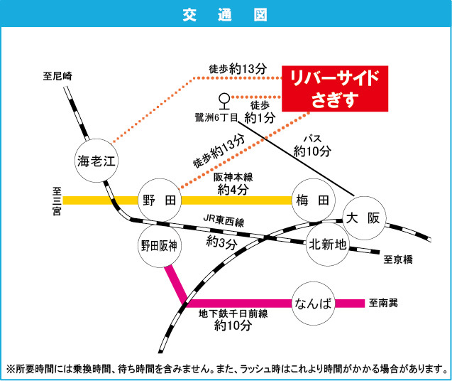 大阪市営千日前線 『 野田阪神駅 』 徒歩13分 阪神本線 『 野田駅 』 徒歩14分 |