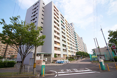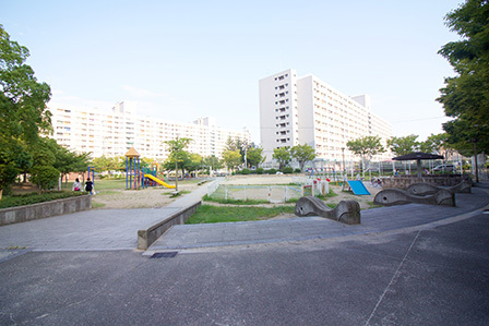 駅近で、最寄り駅から「なんば」までは約5分とアクセスのよい立地です。団地内には店舗があり、周辺にも大型スーパーや商店街も。毎日のお買い物に便利です。公園も近く、静かな環境です。