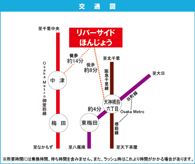 大阪市営谷町線 『 中崎町駅 』 徒歩15分 大阪市営御堂筋線 『 中津駅 』 徒歩15分 JR大阪環状線 『 大阪駅 』 駅までバスで6分 バス停『本庄西二丁目』 徒歩3分 |