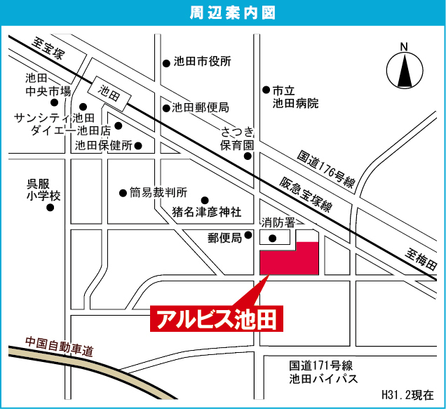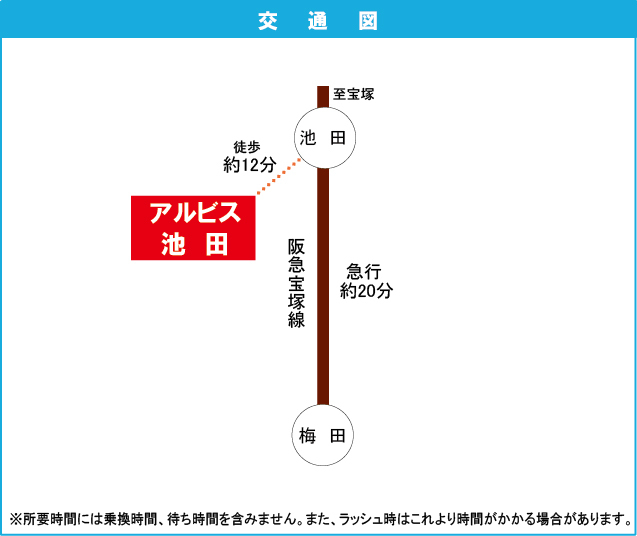 阪急宝塚線 『 石橋阪大前駅 』 駅までバスで7分 バス停『八王寺一丁目』 徒歩2分 阪急宝塚線 『 川西能勢口駅 』 徒歩32分 |