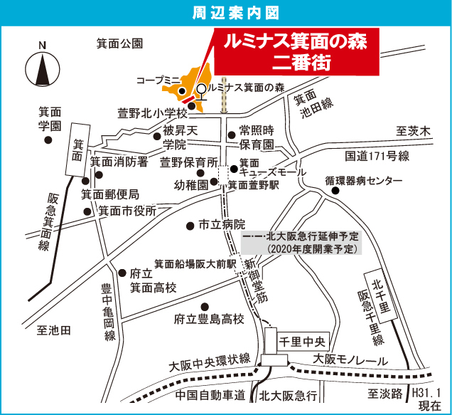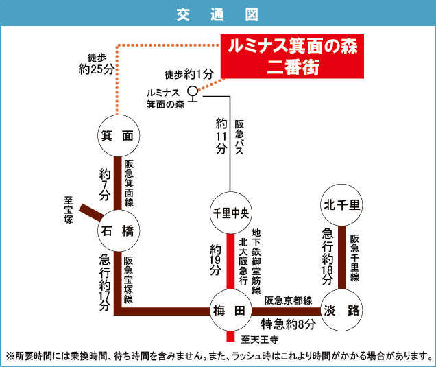 阪急箕面線 『 箕面駅 』 徒歩27分 阪急千里線 『 北千里駅 』 徒歩48分 阪急箕面線 『 桜井駅 』 徒歩52分 |