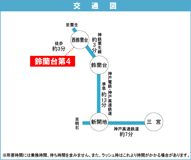 神鉄粟生線 『 鈴蘭台西口駅 』 徒歩10分 神鉄有馬線 『 鈴蘭台駅 』 徒歩18分 |