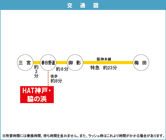JR神戸線 『 三ノ宮駅 』 駅までバスで4分 バス停『春日野道』 徒歩5分 阪急神戸線 『 春日野道駅 』 徒歩10分 |